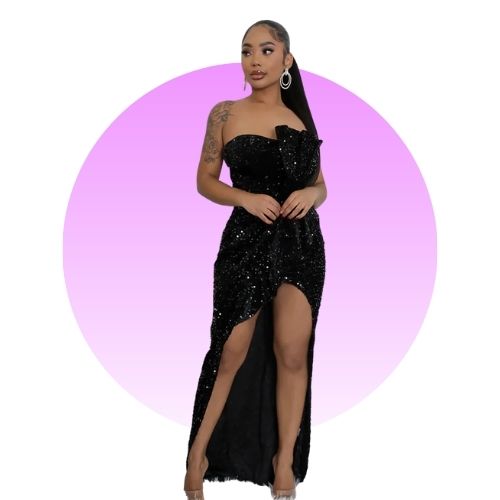 Elegant Sequined Slit Neck Maxi Evening Gown